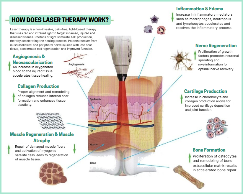 This safe, non-invasive treatment uses gentle light (not heat or cutting lasers) to stimulate your cells and support natural healing. The light energy is absorbed by your cells, especially the mitochondria (your cell’s “powerhouse”), which can: